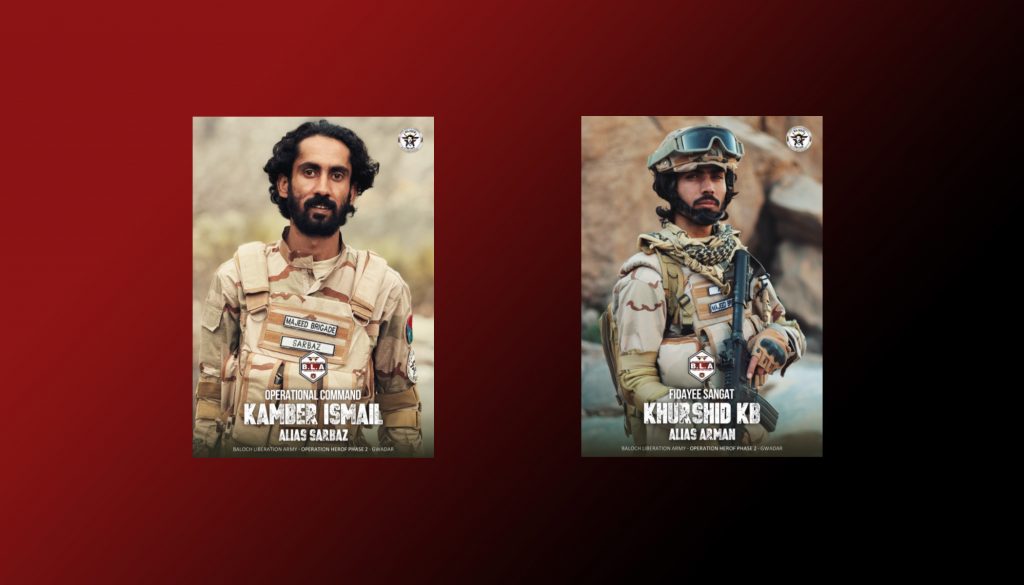 In its latest release, the BLA identified Khursheed, also known as Arman, a resident of Kalag Sourani in Turbat, who joined the organisation in June 2022, and Kambar Ismail, also known as Sarbaz, from Surap in Panjgur, who joined in July 2022. According to the group, both were later assigned roles within its operational units and were active on the Gwadar front during Operation Herof. The BLA described their involvement as part of broader operational and coordination responsibilities during the clashes.
