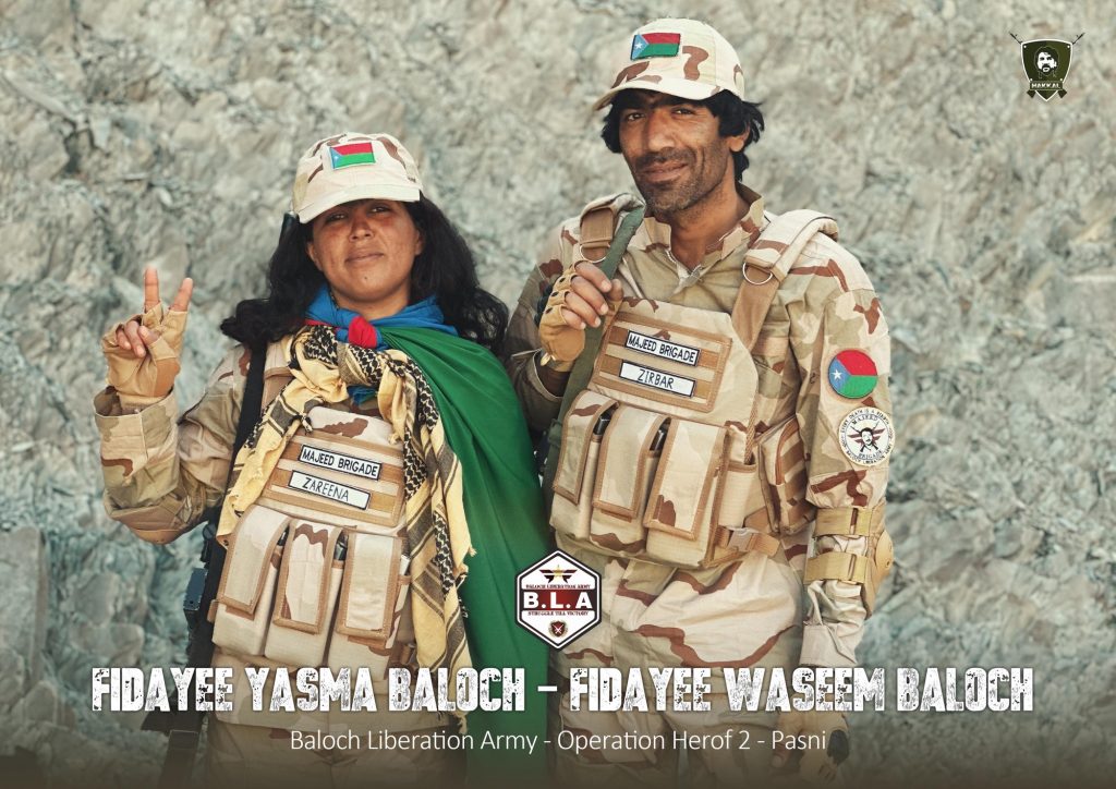 Through its official media channel, Hakkal, the BLA said that Yasma Baloch, also known as Zareena, and Waseem Baloch, also known as Zirbar, had carried out what it described as a coordinated fidayeen attack on a Pakistani military camp in Pasni.